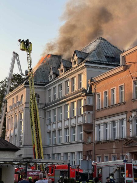 31 lipca doszło do pożaru Akademii Handlowej w Czeskim Cieszynie. Ogień pojawił się późnym popołudniem na poddaszu szkoły przy ul. Sokola-Tůmy, w części, gdzie zlokalizowane są m.in. pracownie komputerowe dla uczniów. Szczęśliwie nikt nie ucierpiał. Przez kilka godzin z okien wydostawały się płomienie, a nad budynkiem unosiły się gęste kłęby dymu…